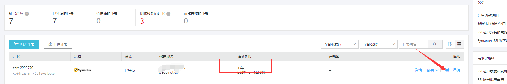 可以看到这是我们最新申请的一年的 ssl 证书: